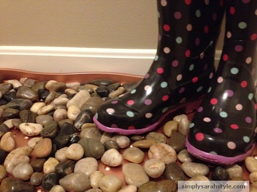 Nakon što se kamenje isprlja od prljavštine sa cipela i čizama, pogotovo u zimskom periodu, istresite ga u lavor i operite deterdžentom. Ostavite ga da se osuši na staroj krpi ili peškiru i ponovo vratite u podmetač koji ste prethodno oprali.