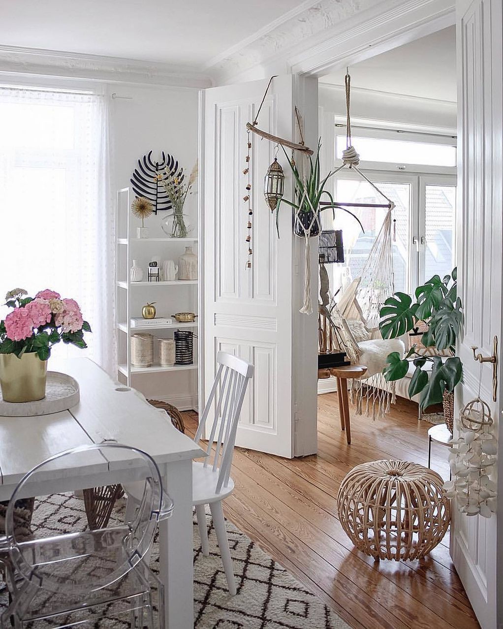 Elegantan i prozračan, smješten u Hamburgu, u njemu dominira bijela boja, a posebnu draž daju mu pomno odabrani detalji kao što su zelene biljke, među kojima je i posebno fotogenična monstera, ali i ljuljaška u dnevnoj sobi koja izgleda kao savršena pozivnica za boravak u njemu.