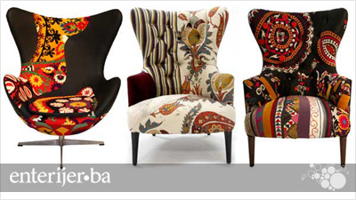Vedra paleta boja i zanimljivi oblici čine ove fotelje i više nego primamljivim za one koji vole dašak neobičnog. Izuzetan vez sa svilenim nitima i upotreba starih tkanina, doveli su renomiranog američkog proizvođača namještaja – „KPM Furniture“ na visoko kotiranu poziciju kada je ovaj zanat u pitanju. Svaka fotelja je pažljivo ručno prošivena do savršenstva i predstavlja pravo umjetničko djelo. U našoj fotogaleriji saznajte kako izgleda njihova najnovija kolekcija i uživajte u svakom pojedinačnom komadu.