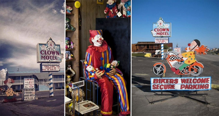 "The Clown Motel" nalazi se u pustinjskom ambijentu Nevade (na pola puta između Las Vegasa i Renoa) i kao što sam naziv kaže - osnovna dekoracija su klovnovi.