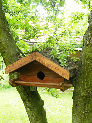 Predivni dizajn kućice za ptice oduševio nas je svojim izgledom. Kombinacija krova od čuvarkuće i drvene osnove odlično je uklopljena u prirodnu oazu dvorišta u Tuzli.