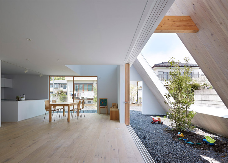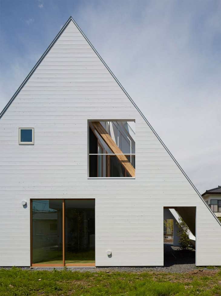 Japanski studio "Suppose Design Office" projektovao je interesantnu kuću u gradu Tošigi u Japanu. Bijeli metalni krov ispresijecan otvorima spušta se do zemlje štiteći terase i baštu koje vlasnici mogu koristiti tokom cijele godine.