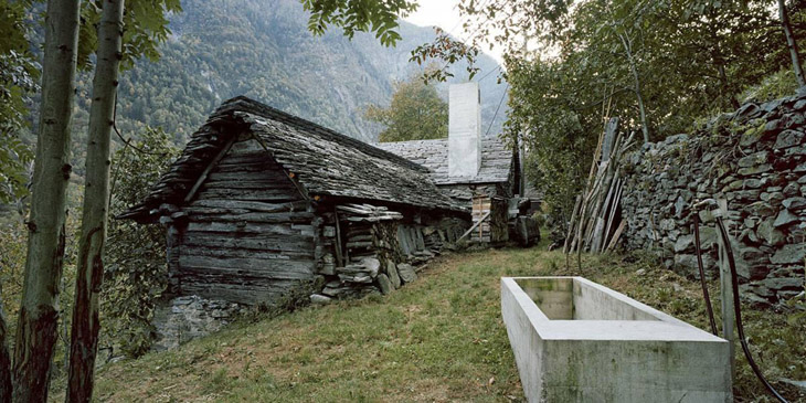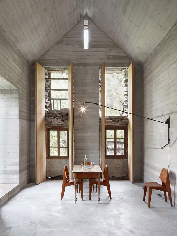 Ovu kuću je nedavno renovirao studio Buchner Bründler Architekten, ali jedino njenu unutrašnjost, dok je vanjštinu ostavio netaknutom. Zadržali su originalni eksterijer napravljen od oronulog kamena i drveta.
