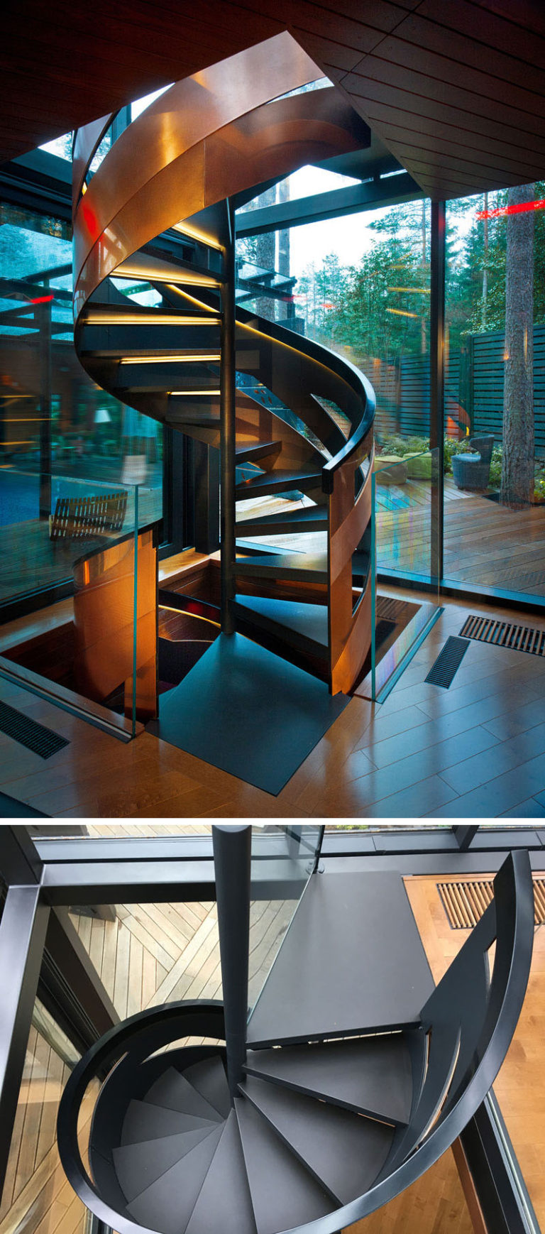 Centralno mjesto i glavnu poveznicu etaža u teratani predstavlja spiralno stepenište čija je ograda izrađena od bakrenih ploča.