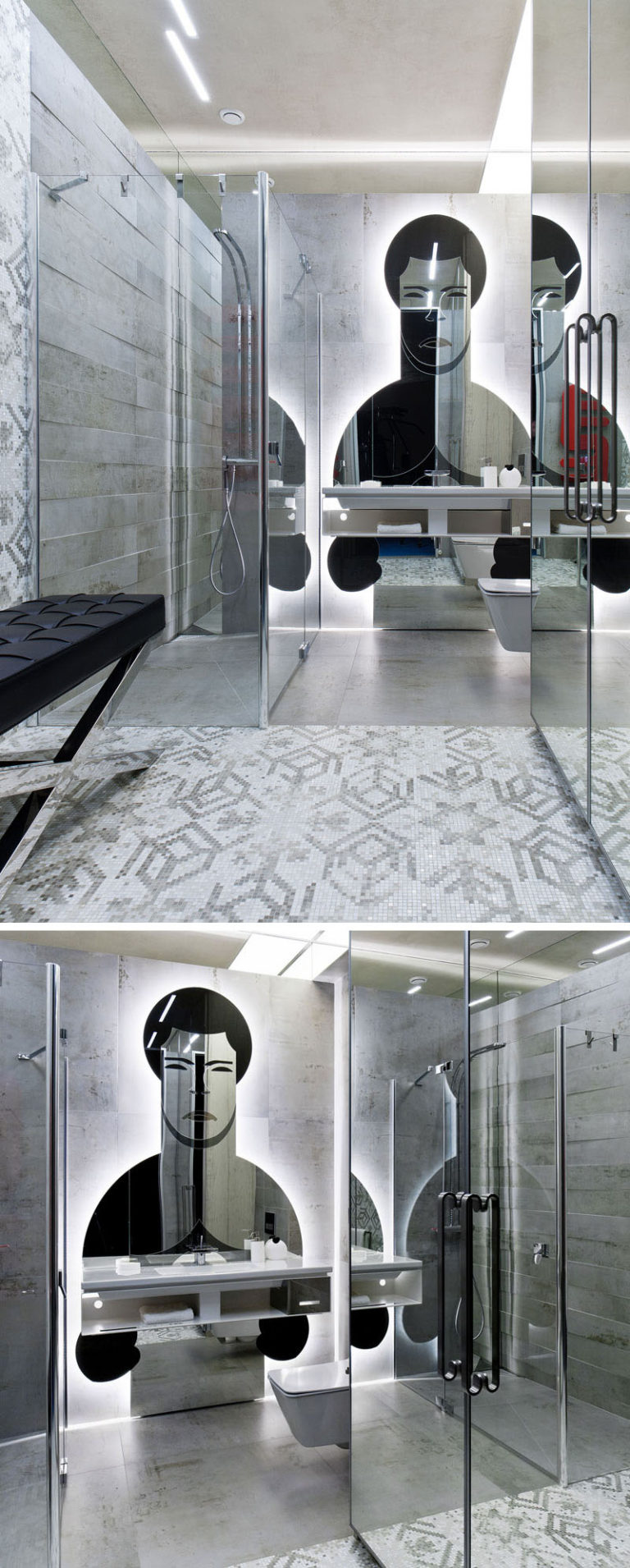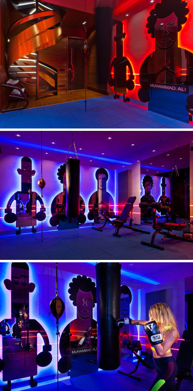Posebno dizajnirana ogledala u obliku lika, legendarnog boksera Muhammada Alija krase prostor sale za boks i kupatila.