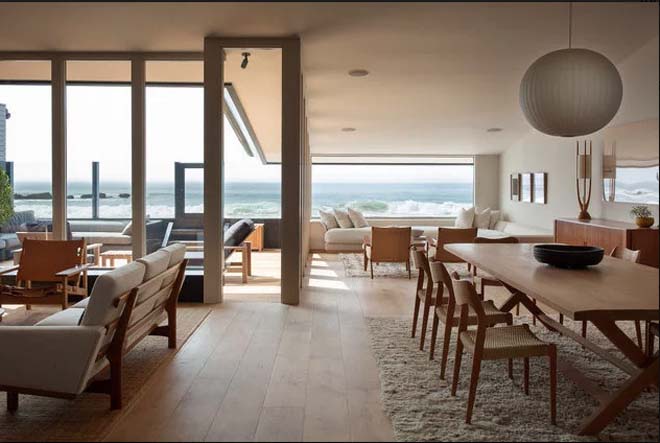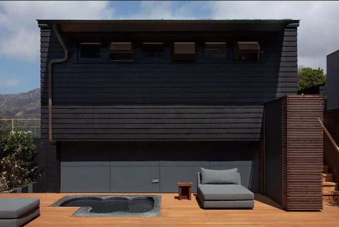 Smješteno na zapadnoj obali Malibua, koja je poznata kao utočište slavnih, luksuzno imanje izrađeno je od karakterističnog crnog kedra, dok se u unutrašnjosti vile prožimaju retro i moderni stilovi.