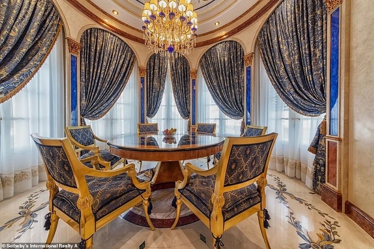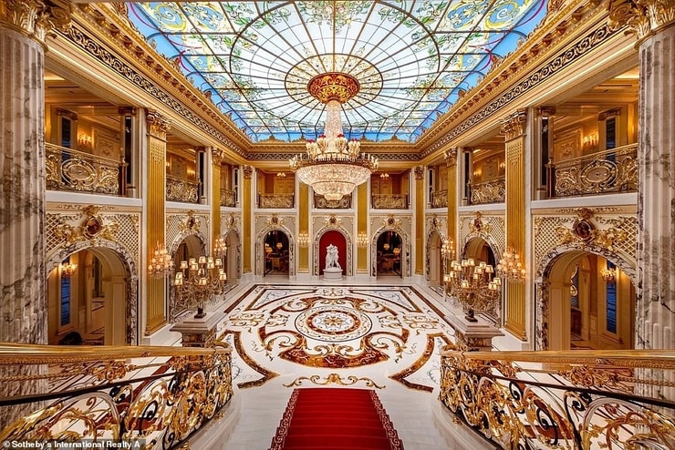 Ogromna vila čiji su arhitekti bili nadahnuti baroknim i rokoko stilom ima mramorne podove te prostran unutrašnji prostor od 69.000 četvornih metara. Unatoč tome, ima samo četiri spavaće sobe.