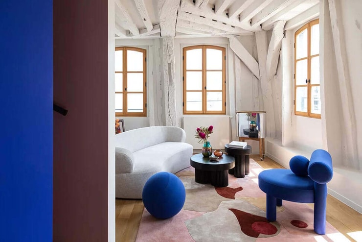 Ispod stropa sa izloženim starim gredama, nalazi se prozračni, svijetli pariški stan u kojem dominira moderni dizajn.