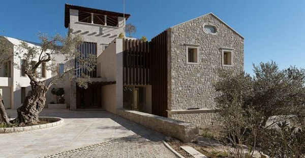 Izgrađena je u četiri osnovna nivoa koji su međusobno povezani liftom. U dvorištu se, pored bazena, nalazi i vrt ukrašen raznovrsnim biljkama, ali najinteresantnije je što u dvorištu nalazi i drvo masline staro između 800 i 1.000 godina.