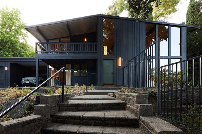 Ključni elementi mid-century dizajna, poput naglašenih drvenih površina, velikih prozora i kosih stropova, čine ovu kuću toplom i prozračnom. Posebnu pažnju privlači multifunkcionalna prostorija koja služi kao gostinska soba i prostor za igru – idealan primjer kako dizajn može biti i estetski privlačan i praktičan.