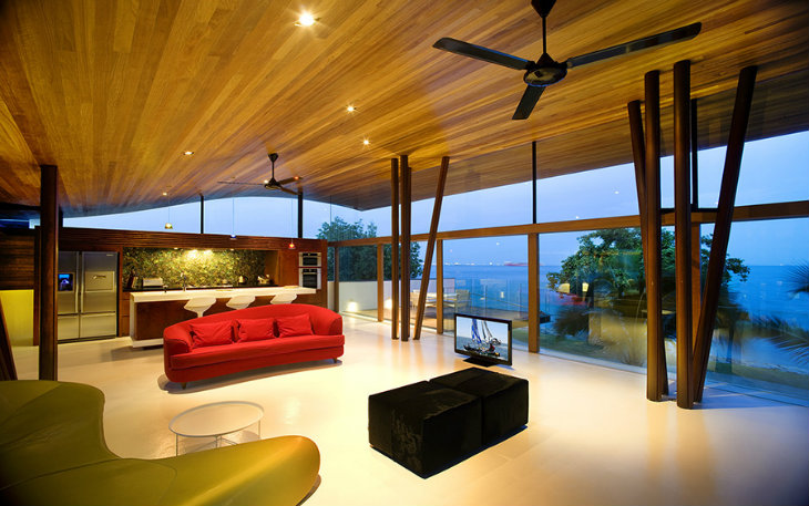 Osnovna ideja vezana za ovu kuću jeste obezbijediti vezu sa prirodom i prizorima iz okruženja. Akvarijum je 'moderni tropski bungalov' koji je savršeno uklopljen u klimu i okruženje. Arhitekti su ostavili otvoren prostor kako bi podstakli prirodnu ventilaciju. Prozori od poda do plafona omogućavaju neometan pogled na more.
