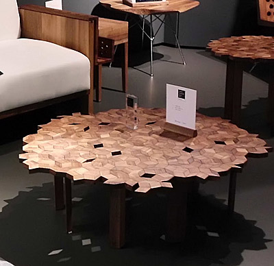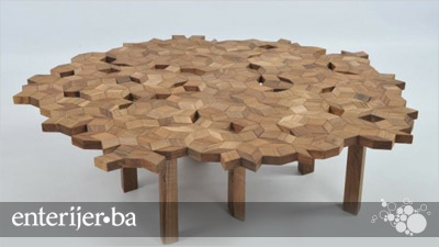 Izrađen od čvrstog orahovog drveta i nastao spajanjem istorodnih sitnih geometrijskih oblika, stol je jedinstven i nagrađen prestižnom nagradom za inovaciju, a dizajnirala ga je Jasna Mujkić.