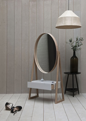 Iz poznate engleske kompanije Pinch stiže minimalističko, ovalno ogledalo sa ladicom, koje je i lijepo i praktično istovremeno. Prirodni hrast je u lijepoj suprotnosti sa bijelim donjim dijelom, koji može da posluži kao niski toaletni stolić.
