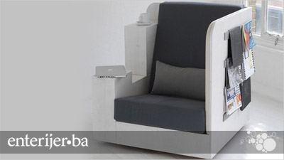 U fotelju je ugrađen i dio koji posjeduje prostor za odlaganje knjiga, časopisa, laptopa i detalja.