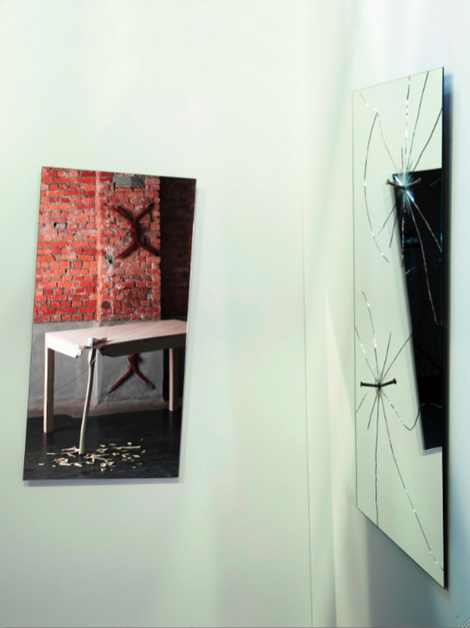 Ogledalo je jedno od najfunkcionalnijih komada ove kolekcije. Sastoji se od komada stakla koje izgleda kao da je razbijeno silom. Ekser, koji se kači na zid, stvara pukotine na ogledalu.