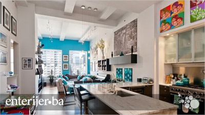 Poseban sklad i nevjerovatna ljepota ovog stana u New Yorku zaista ostavljaju bez daha. Otvoren plan prostora i ogromni prozori čine stan vizuelno većim nego što on to zaista jeste. Boje su svježe i svijetle, ali nigdje se ne može primijetiti suvišna nijansa ili kontrast koji bi ambijent doveo u nesklad. Tirkizno plava, poznata kao posebna boja u enterijeru, daje svježinu i svjetlosni akcenat čitavom stanu.