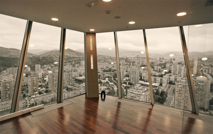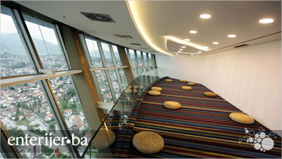 Na više od 850 metara kvadratnih na posljednjem spratu Bosmal City Centra, iz bivšeg nikad otvorenog restorana, pruža se najljepši pogled na Sarajevo, pogled koji su rijetki imali priliku iskusiti. Od danas je to radno mjesto Atlantovaca.