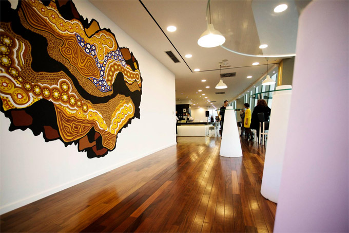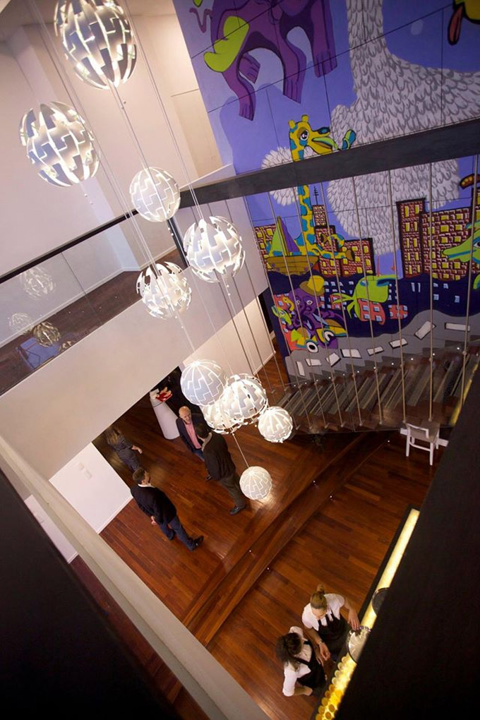 Detalje koje ćete sigurno prepoznati u ovom poslovnom enterijeru potpisuje IKEA, Sinkro i još neke bh. kompanije, a prostorom dominira veliki mural kod stepeništa koji je djelo bh. umjetnika Rikarda Druškića.