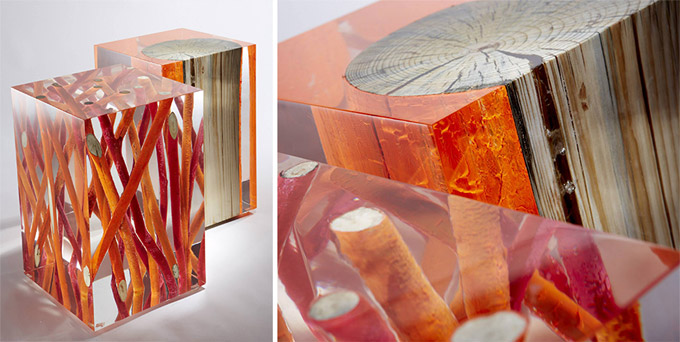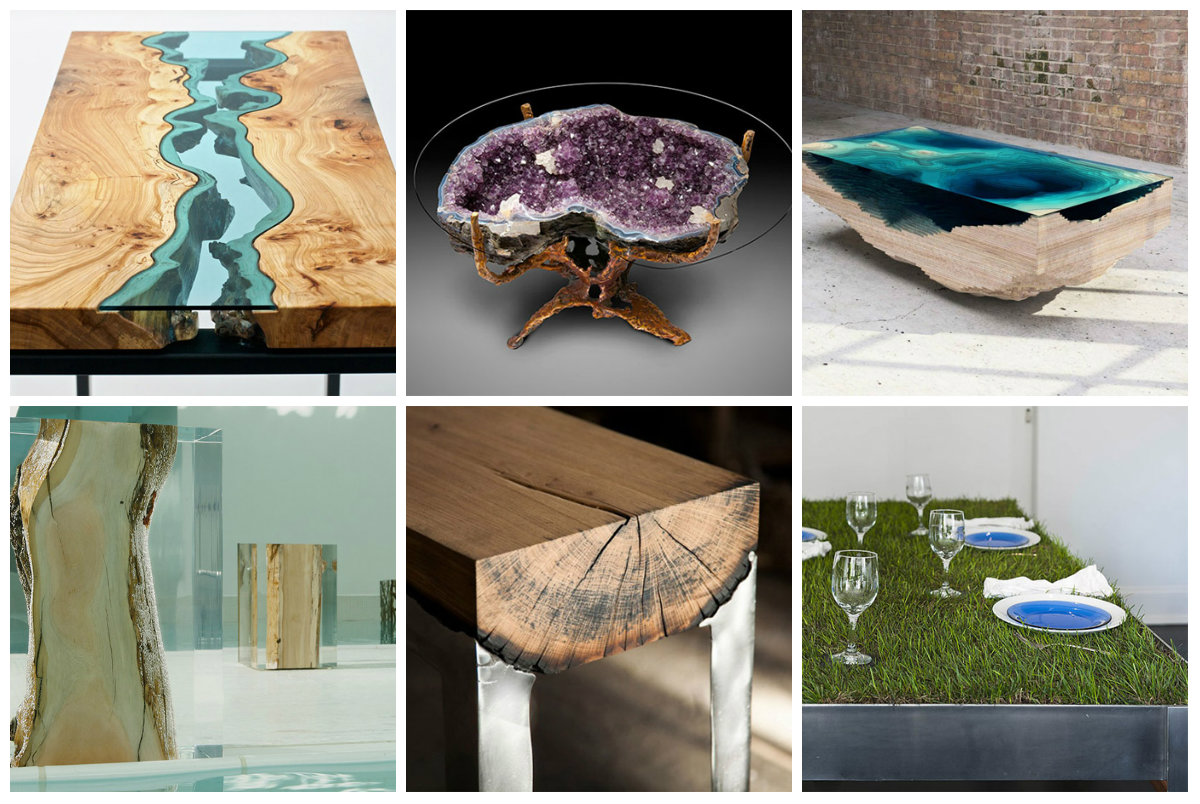 Stolovi sa granama i deblima drveća