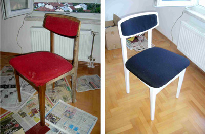 Četiri stolice sretnice prošle su tretman uljepšavanja od šmirglanja do farbanja, što je odradila Dušica svojeručno. Nakon toga produžile su do male zanatske radnje u komšiluku koja se bavi tapeciranjem.