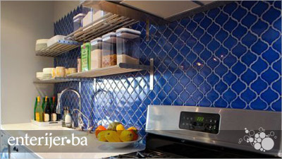 Inspirisani fotografijom Danielle ispred jarko plavih vrata u Tunisu, odabrali su plave pločice za kuhinjski zid koje su poslužile kao baza za dalje radove.