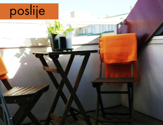 Nakon što je sve sređeno i očišćeno, Dragana je iz podruma izvadila stolice i stol, dekice u narandžastoj boji, te malo detalja kako bi bojama oživjela ovaj dio svog stana.
