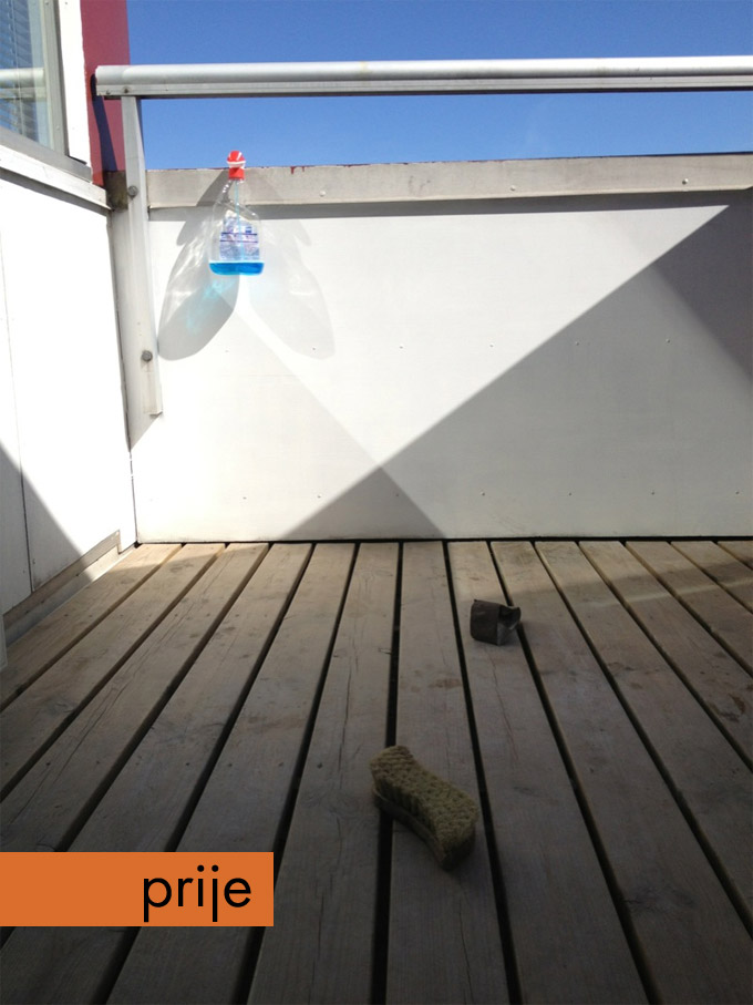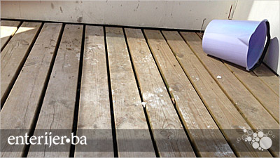 Naša čitateljka Dragana živi na petom spratu i ima lijep pogled ka gradu. U februaru je odlučila da renovira kupatilo, te je majstor koji ga je radio iskoristio balkon za pripremu mase za ljepljenje pločica i ostale radove. Nakon završenog posla, balkon je izgledao haotično. Drveni pod je trebalo šmirglati, prelakirati, a zidove krečiti i čistiti. Akcija je počela jednog toplog sunčanog subotnjeg jutra, te se završila taj isti dan kasno popodne.