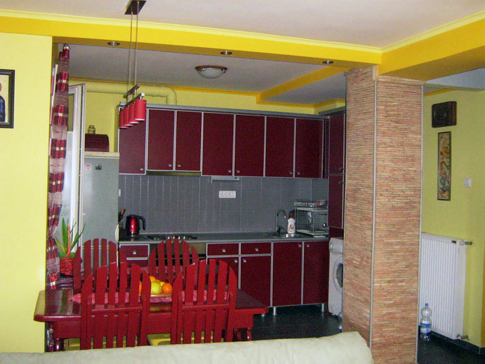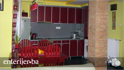 I ovoga puta Vera je odabrala crvenu kojom ne naglasila zemljane boje u enterijeru. Toplina drveta prožima se kroz prostor obojen banana žutom. Siva garnitura i komoda u istoj boji dali su balans jarkim detaljima.