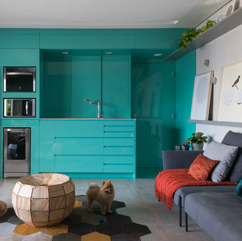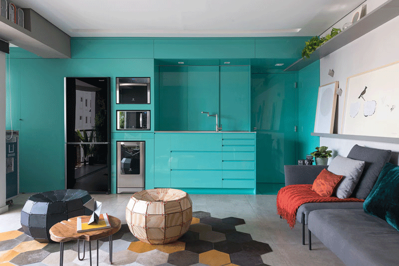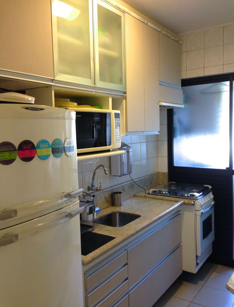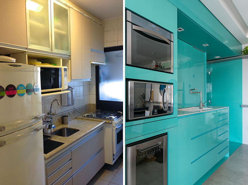 Koristeći jednostavnu paletu materijala, arhitekta Flavio Castro iz FC Studia osmislio je ovu svijetlu i živopisnu adaptaciju male kuhinje u stanu koji se nalazi u Brazilu.