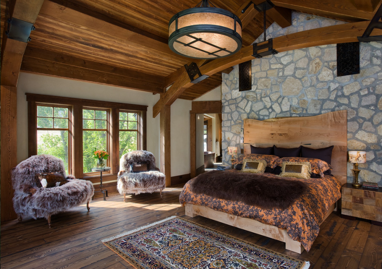 Ove spavaće sobe odišu toplinom i ušuškanošću. To je zbog enterijera prekrivenog drvetom i dekoracije od kamena. Pleteni i krzneni detaji samo doprinose udobnosti.