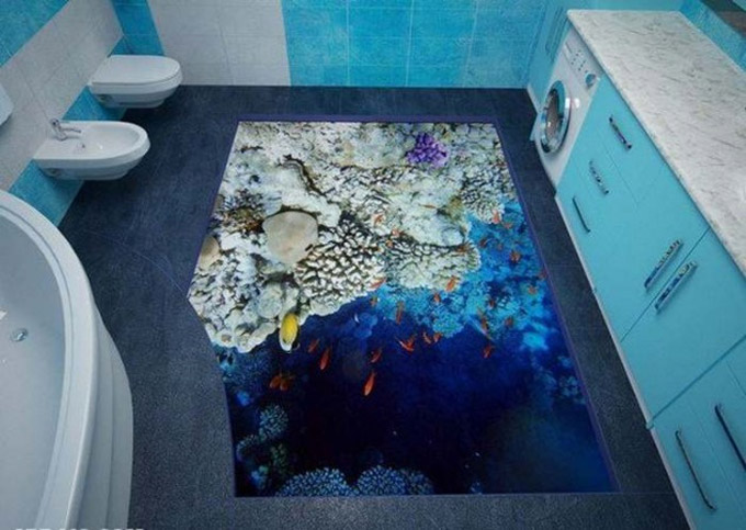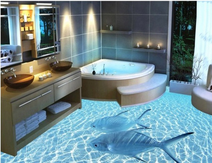 Kada je u pitanju kupatilo, ukoliko ste umorni od jednostavnih pločica za pod, koje su obično u jednoj ili dvije boje, možete dramatično promijeniti izgled kupatila ukoliko pod uradite u 3D tehnici. Slike i crteži nisu više namijenjeni samo zidovima, već sada mogu biti primijenjeni i na podu.
