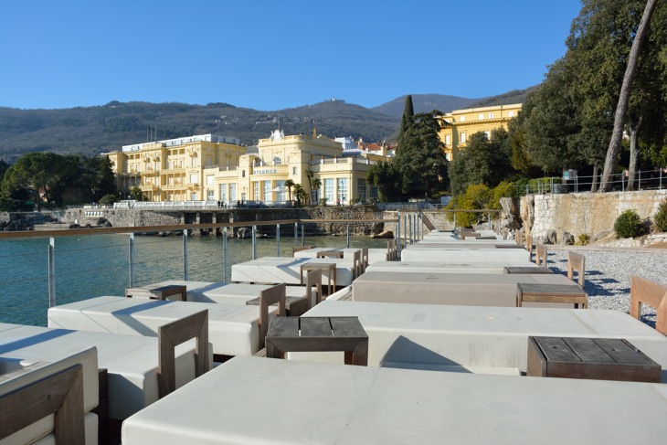 Mi smo se pridružile šetačima i počele obilazak Opatije. Na našu veliku žalost, mnogi ugostiteljski objekti bili su zatvoreni u ovo vrijeme - uglavnom zbog renoviranja i pripreme za predstojeću sezonu koja za mnoge počinje već u martu. Prva stanica bio nam je Lido Beach Bar, gdje smo popile kafu i uživale na ležaljkama kao da je šesti, a ne prvi mjesec. Kasnije smo se uputili prema dizajnerskom hotelu Bevanda koji se nalazi odmah pored Lido plaže. Dogovorile smo sastanak sa Mercedes s početka priče i nastavile obilazak sunčane Opatije.