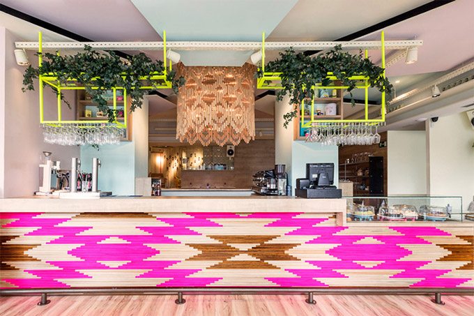Pastelne boje sa detaljima u neonskim nijansama, slatki jastuci sa dezenom i nevjerovatan detalj na šanku čine ovaj kafić sretnim mjestom, gdje ne želite popiti onaj posljednji gutljaj kafe.