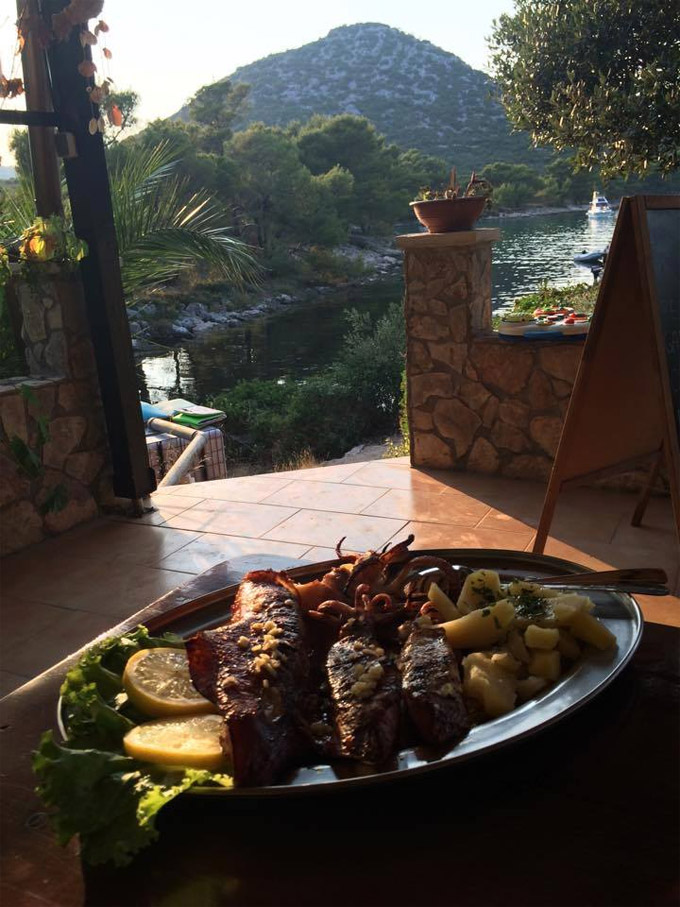 Dolazili smo svakog dana da bismo probali nešto drugo. Kozice na žaru, raznovrsnu ribu koja nije iz uzgoja, već je baš tog dana bila ulovljena. Uživali smo u svakom jelu pripremljenom sa posebnom pažnjom. Još kad za predjelo uzmemo kozji sir preliven domaćim maslinovim uljem. Užitak je potpun.