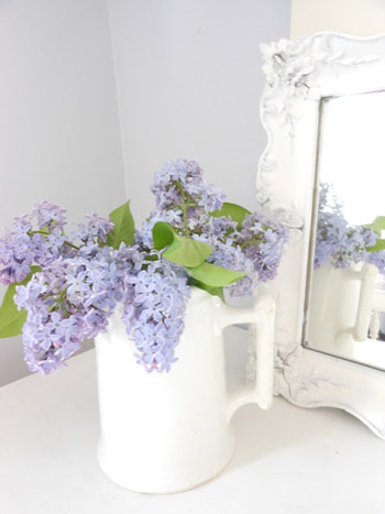 Pored mnogih komplementarnih boja sa lila, bijela je oduvijek stvarala posebnu cjelinu u međusobnoj kombinaciji. Dekorativni akcenti u bijelim enterijerima sa bojom jorgovana ili obrnuto, stvaraju prostore okupane svježinom, svjetlošću, elegancijom i skladom.