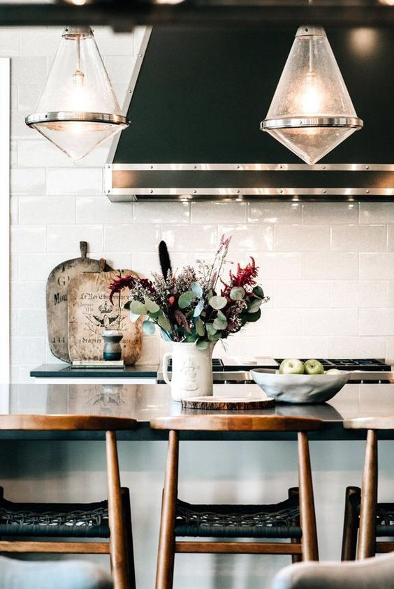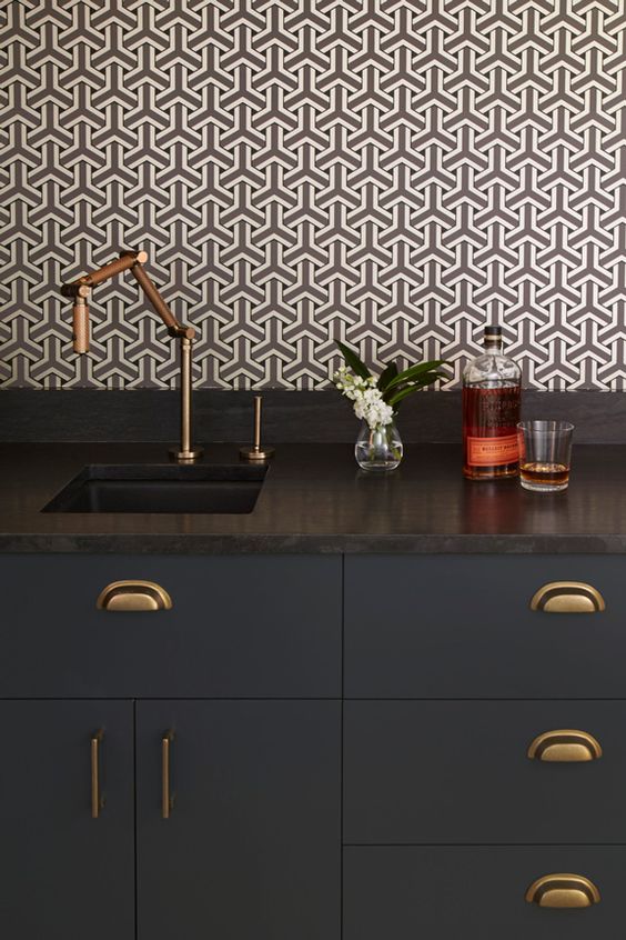Minimalistički kuhinjski ormari upotpunjeni sa pažljivo odabranim detaljima u nešto toplijim bojama savršen su način za ažuriranje „muške“ atmosfere. Svi oni koji vole dekorativnu ciglu, ovo je ideja kako crnu ukombinovati sa njom, dobijajući tako opušten prostor za druženje, kuhanje ili uživanje.