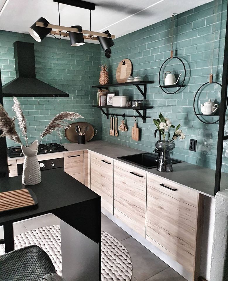 Idealan primjer kako se crna lako kombinuje sa prirodnim nijansama drveta i zelenom, vidljiv na fotografiji, ukazuje na drugačije shvatanje crnih tonova u prostoru u kojem se kuha i provodi vrijeme.