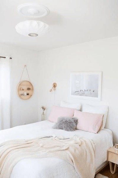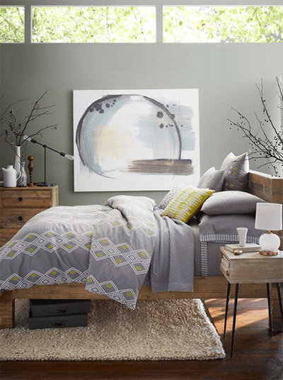 Ova neutralna siva sa ljubičastim tonovima je odlična boja za detalje u spavaćoj sobi.