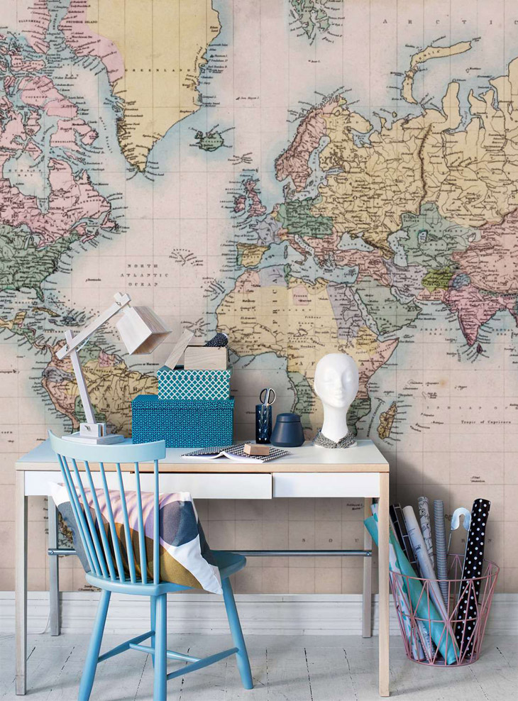 Jasne i izražajne boje, grafički prikaz i ljubav prema nauci, putovanjima ili istraživanju nepoznatog, mogu da utječu na unošenje mapa u enterijer. Lako se kombinuju, prilagodljive su i na razne načine pronalaze put da se u svaki stil jednako kvalitetno uklope.