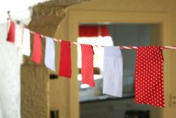 Ponekad je lijepo da stvari budu jednostavne. Tako je i sa idejom koja se odnosi na praznično dekorisanje tidova. Jedna špaga u boji na koju su nalijepljene trakice od papira ili platna izgledaju i više nego efektno. Tonovi neka budu vedri, sa dosta crvene, zimskih motiva ili šljokica. Ukoliko imate vremena, na svaku od njih možete ispisati i neku inspirativnu poruku za svoje ukućane.