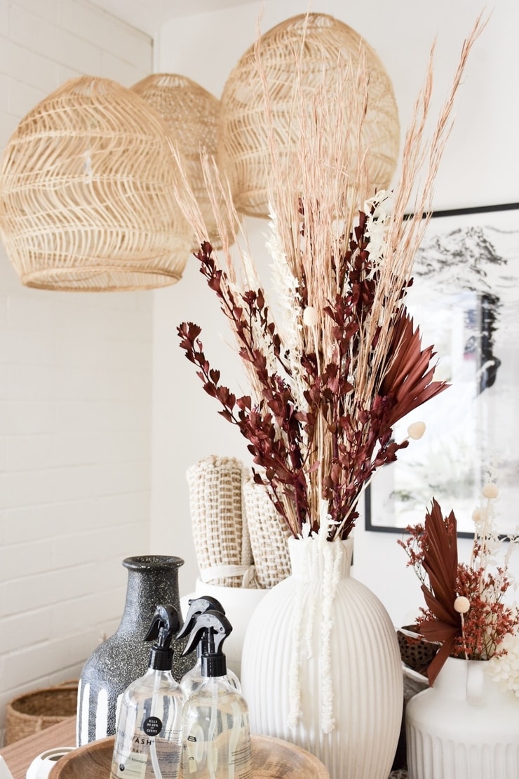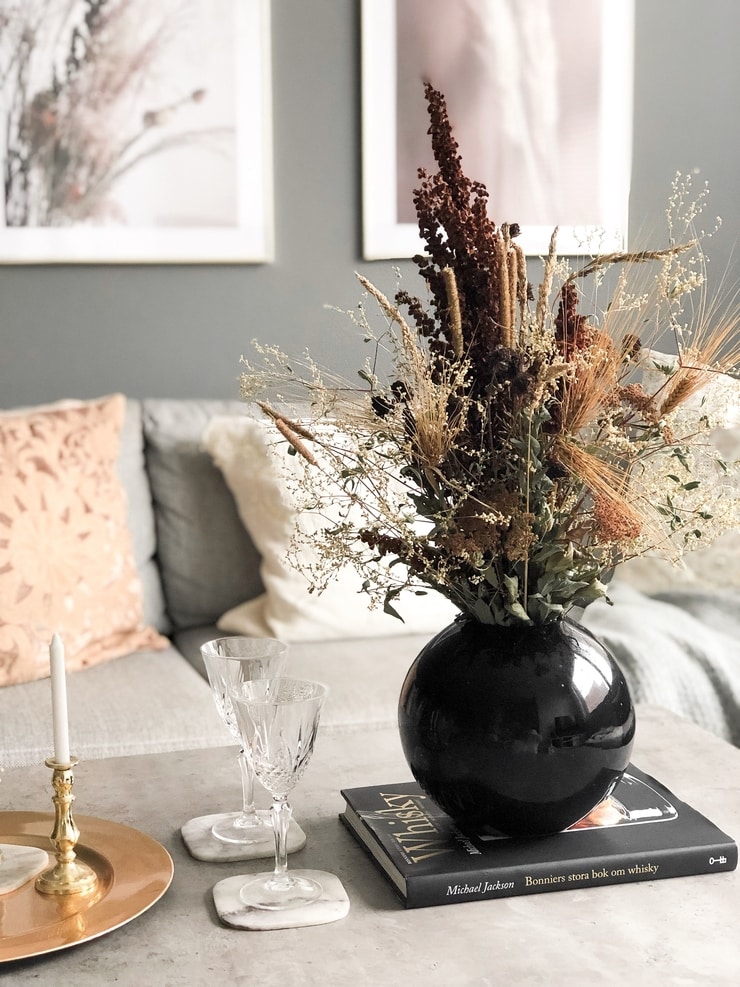 Osušeni eukaliptus, pampas, lavanda, ruže, čičak... Izbor je širok i uvijek izgleda jednako dobro. Suho cvijeće je i praktično. Dok naprimjer umjetno cvijeće može izgledati jeftino, sa suhim to nije problem. S druge strane, jeftinije ga je imati u domu nego, naprimjer, buket svježih božura svake sedmice.