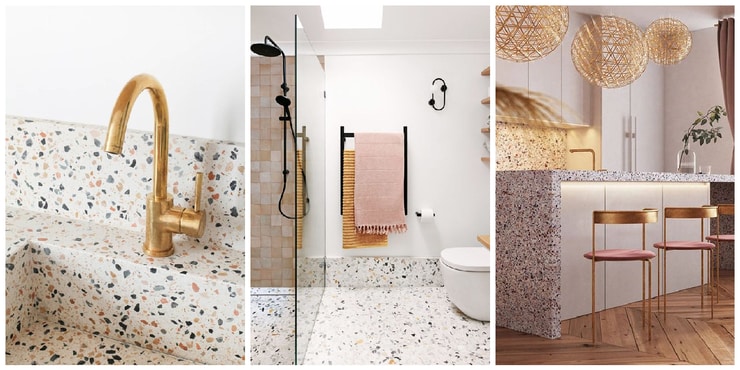 Terrazzo će posebno zanimljivo izgledati u vašim kuhinjama i kupatilima gdje unosi dozu elegancije, a slaže se i sa ostalim materijalima kao što su kamen, drvo, željezo i brojni drugi trenutno popularni materijali u enterijeru.