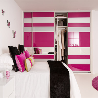 Evo dokaza da plakar ne mora nužno da bude u zagasitim nijansama. Pink-bijeli klizni ugradni ormar je idealan za sobe djevojčica i tinejdžerki. Posjeduje sjajnu boju, mat staklo, pregršt prostora i zanimljiv prugasti stil.