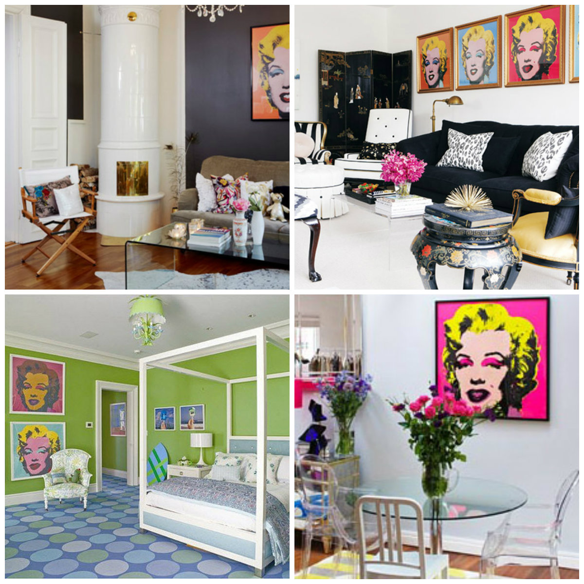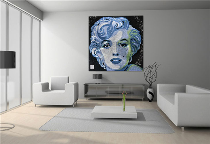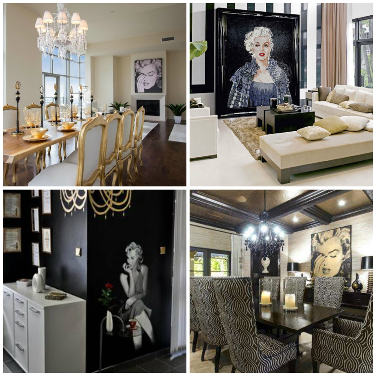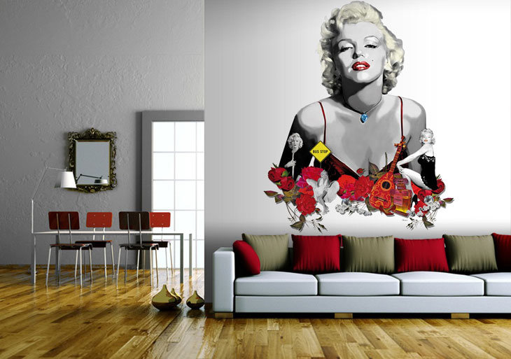 U savremenim stanovima sa naglašenim elegantnim detaljima, ukrasima i dostignućima moderne tehnologije, veliki lik Marilyn u centralnom dijelu stana može da pomogne da se ambijent personalizuje u sopstvenom stilu. Izbor nijansi i portreta na tržištu je ogroman, što u vidu foto-tapeta, naljepnica ili velikih foto-reprodukcija.