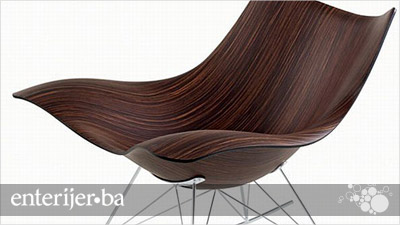 Moderna i veoma upečatljiva, ova stolica za ljuljanje inspirisana je izgledom školjke. Ona je klasičan primjer futurističkog tumačenja stare, tradicionalne stolice. Iako odlično izgleda, na prvom mjestu je ipak njena funkcionalnost, pa tek onda estetika. Dostupna je u drvetu oraha, hrasta i posebnog afričkog drveta po imenu Makassar. Sa detaljima od hromiranog čelika, drvetom i tapaciranim, udobnim sjedištem ona je i više nego poželjna za enterijer moderne dnevne sobe.