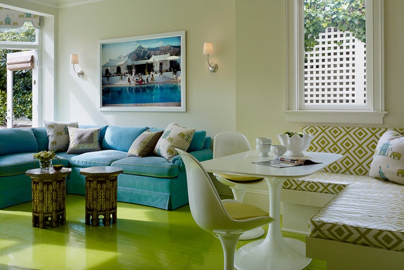 Ukombinovana sa smeđom i bijelom, dobija odličan efekat prirodnosti, a prostor je vizuelno dobio na dubini. Odlična ideja za kuće na moru, vikendice, ali isto tako i za stan u centralnoj zoni grada.
