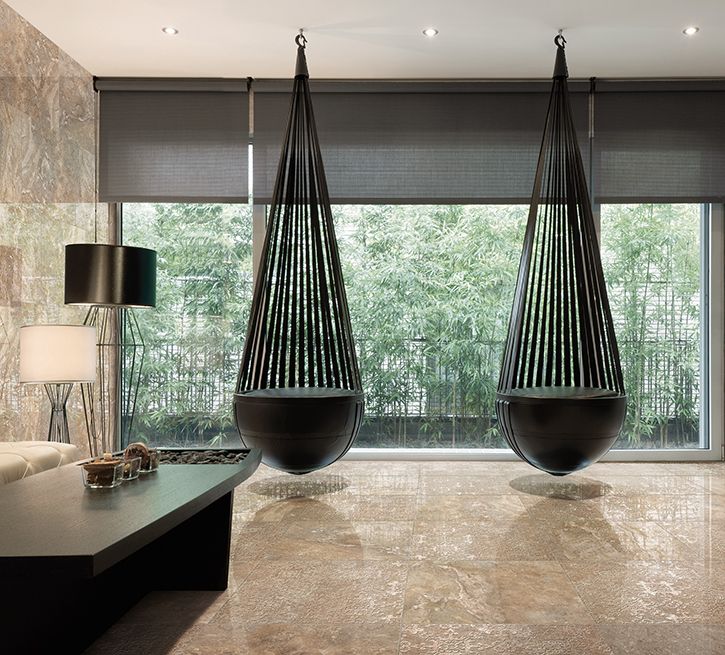 Svi oni enterijeri koji su spremni na promjene i male eksperimente mogu da ugoste primjerak ovakve stolice, bilo one koja je okačena o plafon ili one sa samostojećom konstrukcijom. Viseće stolice su mala doza savremenog luksuza, posebnosti i ličnog doživljaja lijepog.