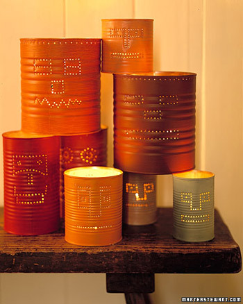 Da začinite ovu drevnu feštu s malom dozom modernog napravite svijetleće konzerve s licima robota. Sačuvajte iskorištene konzerve, operite ih i ogulite naljepnice. Napunite ih vodom i stavite u zamrzivač neka se voda potpuno zaledi. Tako zaleđene konzerve stavite na čvrstu površinu preko koje ste položili više puta savijenu krpu i uz pomoć šila i čekića izbušite rupice na konzervi praveći obris nekog zamišljenog robota.