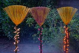 Obične metle, zabodene drškom u zemlju ispred vaše kuće ili prislonjene uz zid u vašem stanu izgledat će sjajno i mamiti svakoga da pokuša uzletjeti na nekoj od njih. Za bolji efekat drške omotajte lampicama za jelku.