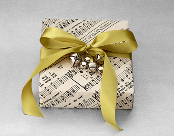 Veoma romantično i svečano izgleda papir sa notnim zapisom pjesme po izboru kao ogrtač lijepog poklona. Sasvim sigurno ćete izmamiti uzdahe ovako upakovanim darom. Ukoliko je u pitanju neko mlađi upotrijebite notni zapis prigodne pjesme “Zvončići”.